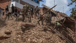 An aftershock of the Nepal earthquake hit Tuesday while a Pakistan Air Force crew was landing a plane carrying aid for those in Nepal, making the plane lurch forward. “That’s when, in the distance, a building collapsed and the dust raced toward us,” said technician Sanaullah Khan. “It was like a sandstorm it came so fast.” During an exchange with an air traffic controller while the plane taxied, communication halted for 15 minutes. Squadron leader Ahmad Bilal said the plane did successfully deliver 40 tons of aid, 18 Pakistani engineers and two search-and-rescue dogs.