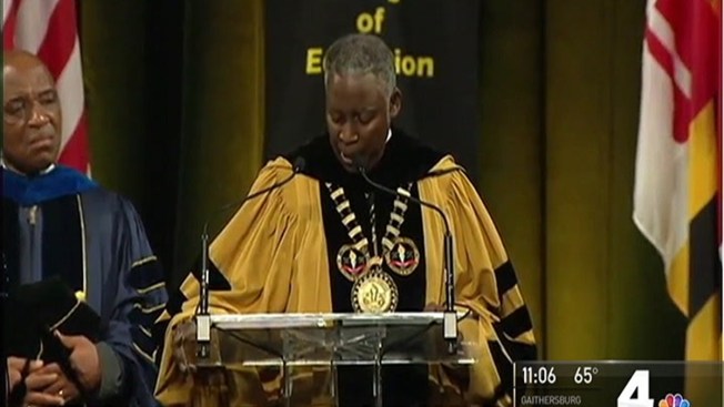 Bowie State President Mickey Burnim asked graduates to remember Collins.