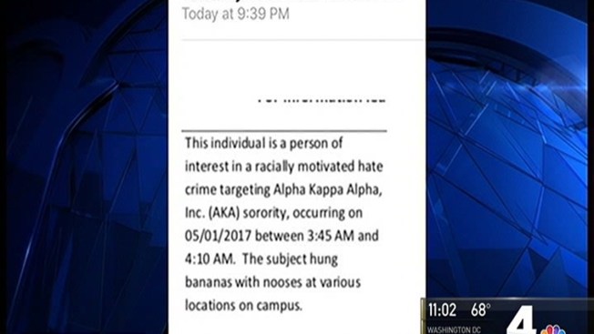 Bananas marked with the letters "AKA," the abbreviation for Alpha Kappa Alpha, the historically black sorority, were found in three locations of the university's campus starting Monday morning.