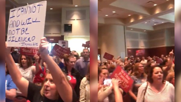 For the same reason, Laura Morris, a woman who said she's been a full-time teacher in Loudoun County for five years, quit her job during her speaking time.